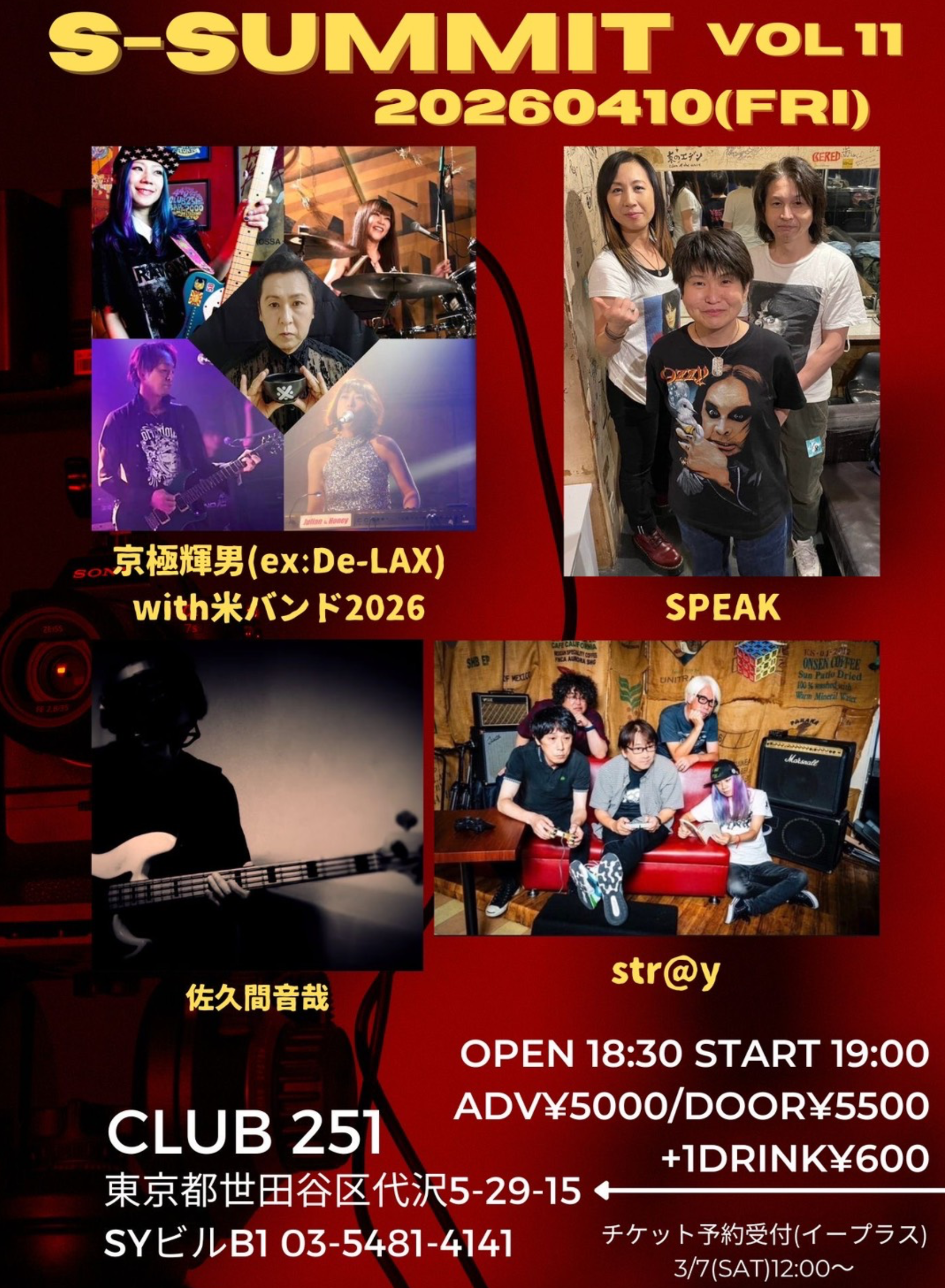 出演:京極輝男(ex:De-LAX)with米バンド2026 / SPEAK / 佐久間音哉 / str@y